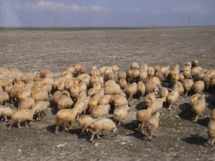 キャラバンサライを出発して間もなく、道路を横断して行く羊さんたちの群れに遭遇。牧羊犬たちがしっかりお仕事して羊さんたちの群れをまとめている。