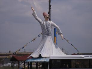 インジェ・ミナーレ博物館からバスで10分くらいでメブラーナ博物館に到着。メブラーナ博物館の見学で初めてスカーフの出番となる。旋回で有名なメブラーナ教の総本山で創始者のメブラーナが眠るメブラーナ霊廟は、現在は博物館として公開されているけれど、スカーフを着用した方が望ましいようだ。初めての海外旅行で買ったスカーフが初めての出番を得た。(笑)