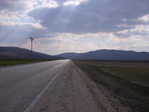 特に名所旧跡ではないけど、これが昔と変わらぬシルクロードの風景。昔の旅人はこのシルクロードを馬などを連ねて何日も何ヵ月も旅したのだろう。その距離を1日で走破してパムッカレに向っている。