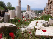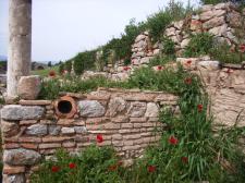 このクレテス通りの通りの右側と壁の間にも遺跡の柱などが置かれており、そこにはポピーが彩りを添えていた。