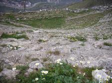 劇場劇場は丘の南西斜面に造られ、古代遺跡の劇場の中でも最も急斜面な分、音響と眺望に優れている。この急斜面を降りるのは足元に注意が必要だった。