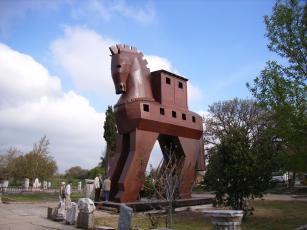 ペルガマから3時間以上走ってトロイに着いたのは夕方17時近く。まずはトロイの木馬の写真撮影。