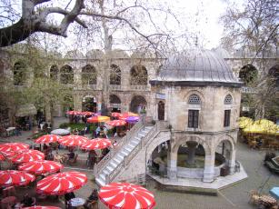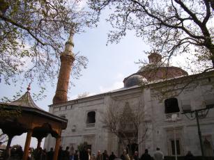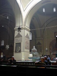 12時20分にブルサのイシェル・ジャミィの見学開始。当初の予定では昼食後に観光を始めるはずだったのだけど、あいにくとこの日の昼の礼拝が1週間のうちで最も長い時間をかける礼拝だそうで、それを避けるために昼食前にイシェル・ジャミィの見学をしてしまうことになったのだ。