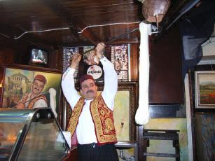 夕食後、レストラン界隈を20分くらい散策する時間があったので、バスを降りてからレストランまでの間にあった伸びるアイス屋さんに直行。伸びる伸びるの実演をしてくれて、←のおじさん後方の絵のポーズ↓もとってくれた。