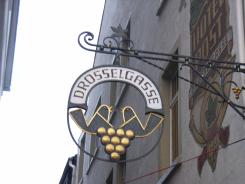 つぐみ横丁のライン河寄りの入口(?)には石畳につぐみの模様が、そして上には、つぐみ横丁の看板が出ていました。つぐみさん、可愛い。