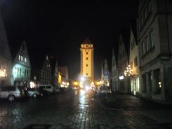 部屋に荷物を置いてすぐに、またまた個人的な夜のお散歩。まずはプレーンライン。ローテンブルクきっての観光名所も人通りがありません。ライトアップしていていいムード。