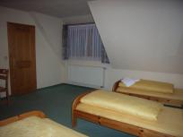 お部屋はこんな感じ。3階でちょっと屋根裏っぽい感じになってます。2人部屋なのにベッドは3つ。