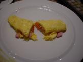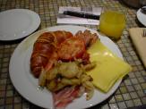 朝食のレストランには、焼きトマト、ポテト料理、ウィンナー各種、ベーコンなどホットミールとヨーグルト数種。その他多数。卵料理担当のおねえさんがいるので、好きな具材を選ぶとオムレツを焼いてくれる。