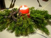 夕食の飲み物はブドウジュース。見た目は赤ワインです。テーブルの上のディスプレイもクリスマスしてます。こういう気配りが素敵です。
