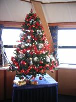 この夜は、このクルーズ船は貸し切りでクリスマスパーティが開催されるそうで、船のスタッフさんは、パーティ用のディスプレイの準備を始めていました。