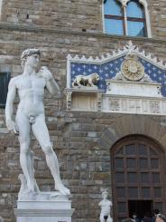 ダヴィデ像(レプリカ)ウフィッツィ美術館の次は、お隣りのヴェッキオ宮、シニョーリア広場。ここはフィレンツェ観光の中心地なだけに、観光客でごったがえしていました。