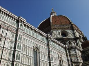 ドゥオーモとドゥオーモの正面にある洗礼堂の説明を聞いてから、ドゥオーモ正面向かって右手に回りこんで進ので、側面からブルネレスキ設計のクーポラがよく見えます。 ツアーではドゥオーモは外観見学のみ。ガイドさんによるとドゥオーモ内部は「ガラ〜〜〜〜〜〜〜〜〜〜ンとしている」そうですが…。