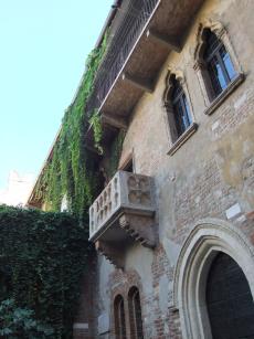 ジュリエットの像の右胸に触ると幸せな結婚ができると言われているそうで、ぴかぴかになっています。もちろん、私も触って記念写真を撮りました♪「ああ、ロミオ、あなたはどうしてロミオなの。」で有名なバルコニーのシーン。この家で本当にそういうシーンがあったかどうかの真偽はともかくイメージは大きくふくらむジュリエットの家ではあります。