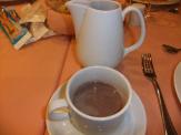 飲み物に甘〜いホットチョコレート3EUR(約405円)を選んだのは疲れているせい? 前菜、メイン、デザートとも、これと言う印象なし。普通に普通の食事でした。