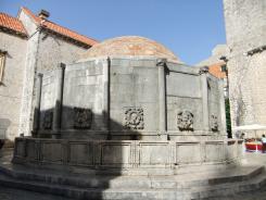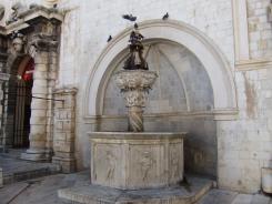 1438年に造られ、12km離れた源泉から水を引いた噴水は、1667年の大地震で多くの装飾を失いましたが、16面の顔のレリーフは姿を留めており、そこから今も水を吹き出し続け、その水は飲めるそうです。