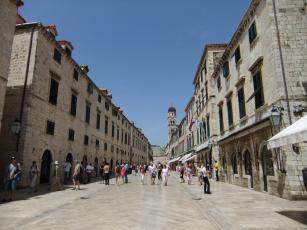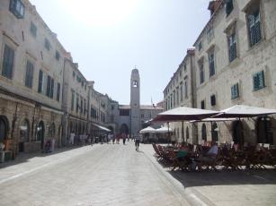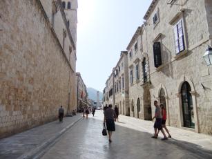 西のピレ門と東のルジャ広場を結ぶ約200mのプラツァ通りは街のメインストリート。この通りの石畳もこれまで訪れたシベニク、トロギール、スプリトの通りと同じく、ぴかぴかツルツルに歩き込まれ、磨きこまれていて、まるで鏡のような石畳です。