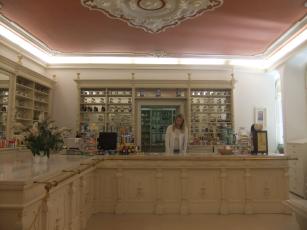 サンフランシスコ会修道院内には、1391年に開業したヨーロッパでも3番目に古い薬局があり、ちょうど待っている場所がその薬局の前だったので、閉じられたドア越しに写真を1枚撮らせていただきました。