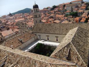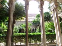 修道院の建物は1667年の大地震のあとに再建されたものだけれど、中庭は14世紀のままなのだそうです。中庭を囲むロマネスクの回廊は、落ち着いた癒しの空間。プラツァ通りの喧騒とは別世界。
