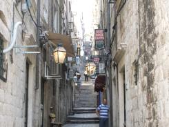 プラツァ通りはかつての海を埋め立てた通りなので平らですが、通りから横に入った路地は、坂道と階段が続いています。