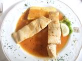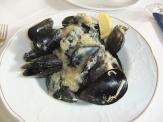 ムール貝のお味はそこそこ。にんにくが効いていました。フランスのサンマロで食べたムール貝より身が大きくておいしかったような気がします。ブロデットはトマト味の魚の煮込みで、ちょっと苦手。味を見た程度でパス。ロジャータは、もう少し厚く切っていただきたいです。(笑)
