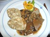 スープは好みのお味。子牛のソテーマッシュルームソースかけは少し味が濃いかなぁ。でも、少し味が濃いと思う料理が多いのですから、こちらではこれが普通なのかもしれません。フルーツポンチは普通。