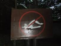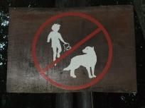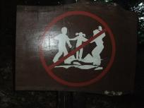 ホテルと公園の入口の間に公園内での禁止事項の標識が6種類。実に端的で分かり易い絵柄です。「ペットを放すの禁止」はこのときにはてっきり「ペット連れ込み禁止」だと思っていました。ツアーでの公園見学のときペット(犬)を連れている観光客がいたので、ガイドさんに聞いたら「リードを外すのがダメで、連れてくるのは許可を受ければOK」だというお答えでした。