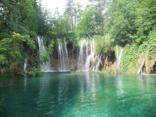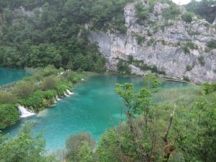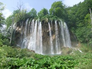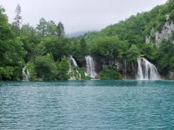 右上の写真の大滝が、クロアチアで最大の滝で約78mの高さから流れ落ちているそうです。滝つぼ近くから滝を見上げる形で見学できます。これまでの観光日程中はず〜っと晴れていたのに、この日このときは薄曇。仕方がないこととはいえ残念!