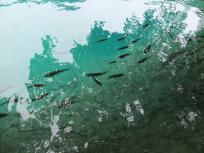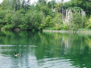 上湖群にも下湖群にもたくさんの魚がいます。何枚か魚の写真を撮った中で、←が最も魚影が鮮明なものです。「釣り禁止」ですから、釣りはできません。プリトヴィツェのレストランで出される魚料理の魚はこの湖産のものではなく、養殖か近くから運んで来たものだそうです。日本だと漁業権を何人かの人が持っていて天然物とかで名物になっていそうですけれど、そういうこともないそうです。