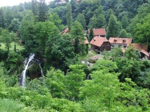 ラトスケ村。私がチェックしたいくつかのツアーでは立ち寄るとパンフレットに明記されていた村の中にいくつもの滝の流れるプチ・プリトヴィツェの村。残念ながら、今回のツアーではパンフレットに記載がないので諦めていたら、添乗員さんが写真ストップしてくださるとのことで、えむちゃんと私は今回のツアーで何度目かの小さなガッツポーズ。