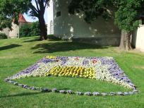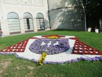 焦って大聖堂の内部に走りこんだので、内部見学を終えてからゆっくりと大聖堂の近辺を回ります。ザグレブ市の紋章などが花で作られていました。ザグレブ市の紋章は色鮮やかで綺麗。右下の写真のパープル、イエローとレモン色で作られた紋章は何の紋章でしょうか。
