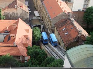 ケーブルカーはイェラチッチ広場の西側から旧市街へ、高低差200mを片道約30秒で結んでいます。