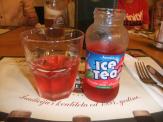 どんなアイスティが出てくるか期待に満ち溢れて待っていたら、昼のアイスティと同じ物が出てきました。クロアチアでは、このラズベリージュースのような飲み物がアイスティのようです。昼のアイスティとの唯一最大の違いは、ラベルに英語で“Ice Tea”と印字されていること。昼のレストランで出たアイスティのラベルはクロアチア語(多分)なので判らなかったけれど、これならラベル上はアイスティと認識できます。(笑)