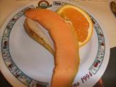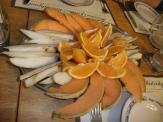 季節のフルーツ(洋梨、メロン、オレンジ)は…最初、ナイフが置いてあったので、自分でフルーツを剥くのかと思ってドキドキしてしまいました。切り分けられて出てきたのでホッ。でも、欲を言えば、今回の旅行のクロアチアでの最後の食事だったので、アイスとかケーキの方がよかったなぁ。