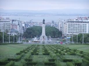 緑地帯の先はポンバル侯爵広場で、ロータリーの中央にあるのは、1755年にリスボンで発生した大地震から街を復興に導いたとして高名なポンバル侯爵像。この地震の話をリスボン市内観光のときに、たびたび耳にすることになります。