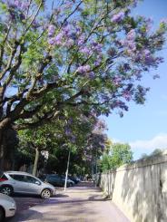 ホテルとコインブラ旧市街の間の道…ホテルのあるほうの丘の道…には、ジャカランダとアカシアの街路樹のある道がありました。坂道でしたけど、この街路樹のあるところだけは、満開の紫色のジャカランダと黄色のアカシアの花を見上げながら、疲れを忘れたような気になって、歩くことができました。