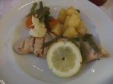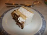 この日の夕食のとき同じテーブルになった方々のお話しを伺うと、このアイスケーキ、上のチョコのかかったクリーム部分だけ食べて、あまりの甘さ&アイスじゃない、ということで、食べ残した方多数だったようです。