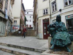 階段を下って行くとコインブラ大学が隆盛だった時代の服装をした町娘さんの銅像がありました。