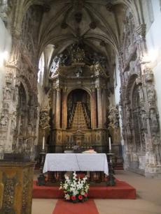 このポルトガル特有の華美な装飾付ネジリン棒と金ピカは、マヌエル様式といって、ポルトガルが大航海時代に一大帝国を築いたときを代表する建築様式だそうで、この後のポルトガル旅行で、様々な場所でたくさん目にすることになります。