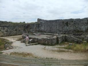 劇場の舞台の後の壁はスクリーンとしてローマ時代から利用されているそうです。今でも劇場跡では歌劇が上演されることがあるとか。ローマ時代の劇場は、現役で活躍しているところが多いですね。