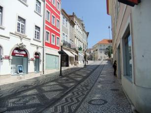 コインブラのメインストリートのフェレイラ・ボルゲス通りに出て、サンタ・クルス修道院方向へ歩くと、→のような交差点がありました。坂道と平坦な道が交差して…。うっとりするほど素敵な道です。こういう道、趣味です。(見る限定)