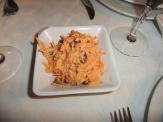 人参の和え物、オリーブ、豆の3皿は、席に付いたときにもうセッティング済だったので、日本でいう付きだしのようなものなのでしょう。