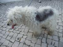 白い毛にグレーのブチ。頭が大きくて体が小さくて3頭身くらいの小型犬。リードしてないのに、おじいさまがおしゃべりしている近くで遊んでいて、どこかに行っちゃわないお利口さん。昨夜、海岸通りで会った小型犬は、この子よりももう少し小さかったかな。写真が撮れなくて残念だったから、この子はぜひ記念に撮りたかったのです〜。満足(笑)