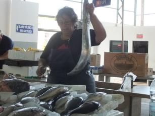 ←のおばさんが持ってるのは太刀魚かなぁ。お客さんがお買い上げして、ダン!ダン!ダン!の包丁の音も高らかに豪快に一刀両断していました。切ったそれぞれの長さがね〜、本当に適当だったのですよ。「とりあえず幾つかに分けてみました〜」くらいな感じの。日本だったらほぼ同じ大きさに切り分けるだろうに、ここは大らかなのですね。