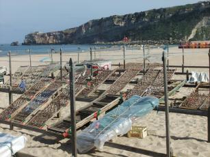 某公共放送の街をぶらぶら歩く番組でナザレを歩いたときに紹介されたアジの開きの天日干し場がありました♪うっわ〜☆本当にアジの開きの頭の部分が開いてない!これ、番組を見たときから見たかったのです〜!!興奮Max。
