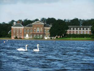ラウンド・ポンドには、白鳥さんが優雅に泳いでいます。白鳥と宮殿、絵になる〜。白鳥の池♪