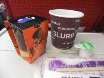 ご飯がガビガビで一口だけでパス。筑前煮は完食したけど、私には味が少し濃かったかな。冷たいお飲み物は何故かコーラ。チョコパッションはありがたくいただきました。温かいお飲み物はもちろん紅茶。