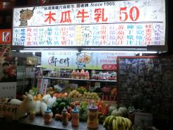 このお店を探して夜市の中を一目散。比較的、私たちが入った入口に近い所にあったので、すぐにパパイヤミルク(50元/約200円)をゲット♪