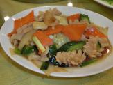 海鮮料理のためか、日本人団体客御用達の店のためか、どの料理も私たちの口に合い、特にエビのすり身の揚げ物とイカの野菜炒めが美味しくて、今回の旅行で旅行会社さんが手配したレストランの食事では、2番目に美味しかったです。みかんのようなフルーツは、すっぱそうな外見とはうらはらに予想外に全然すっぱくありませんでした。