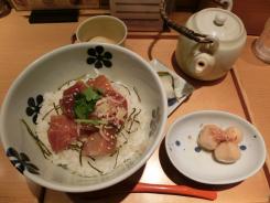 私は←のトラディショナルな鮪のだし茶漬け(800円)、えむちゃんはハーフ&ハーフで2種類のだし茶漬け(1,000円)↓で、写真左は宇和島産 鯛だし茶漬けで写真右は焼き鮭といくらの親子だし茶漬け。お互いに少しずつ分け合って、3種類のお味を楽しみました♪私がハーフ&ハーフにしなかったのは、さすがにそれだとボリュームがありすぎるかなぁ〜と思ったため。