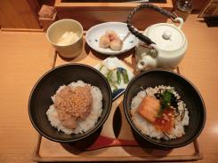 写真右は焼き鮭といくらの親子だし茶漬け)